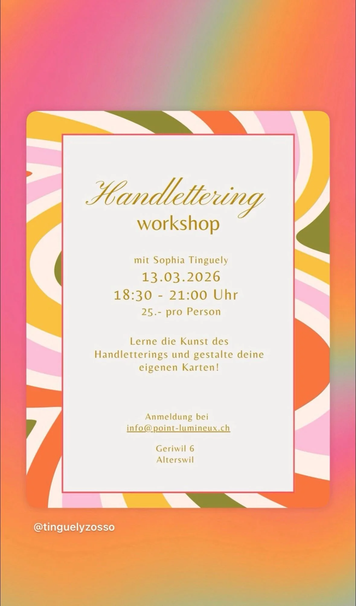 Organisatorin: point lumineux gmbh, Geriwil 6, 1715 Alterswil